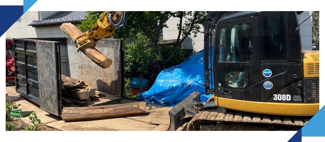 建物の立地にあわせて使用可能な重機や解体方法は異なります。たとえば、隣接に建物があったり、狭い場所で作業したりする場合は、基本的に重機は使用しません。バールのような専用工具を使って、手作業で解体。また建物内の細かい箇所は手作業で、その後は重機で解体する場合もございます。その時々の現場にあわせて臨機応変に道具を使い分け、効率的に作業を進めてまいります。